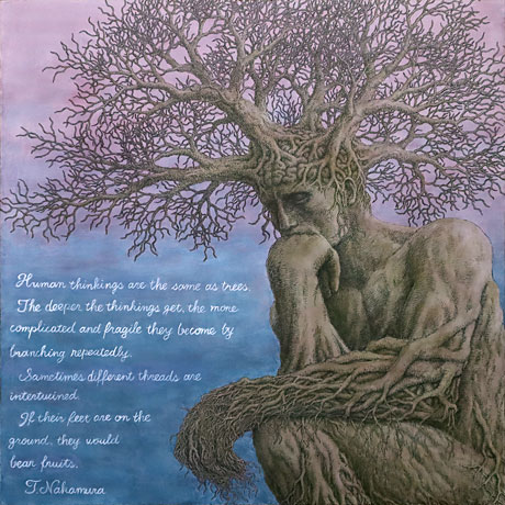 | Skit | 人の思考は樹木に同じ。 深く考えるほどに枝分かれを繰り返し、とりとめなくなる。心もとなくなる。 時には異なる筋道が絡み合うことだってある。 地に足が付いていれば、やがて実を結ぶのだろう。 |