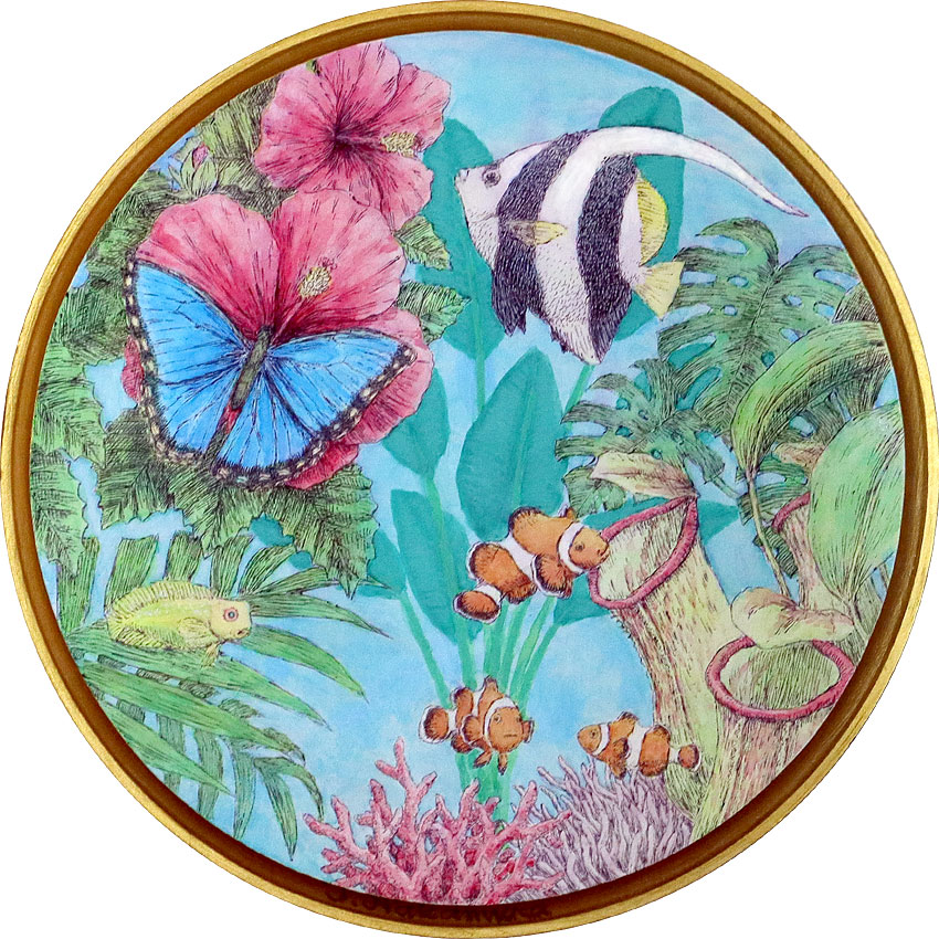 | Material | アクリル絵具、油性ボールペン、ジェッソ、木板 |