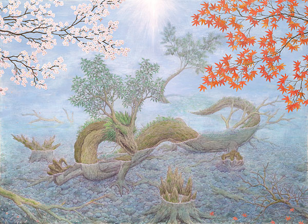 非現実的な自然を描くという基本的なスタイルはこれまでと同様に、時間の経過や刹那の機微をより叙情的に感じられる作品を追い求め、制作に取り組みました。