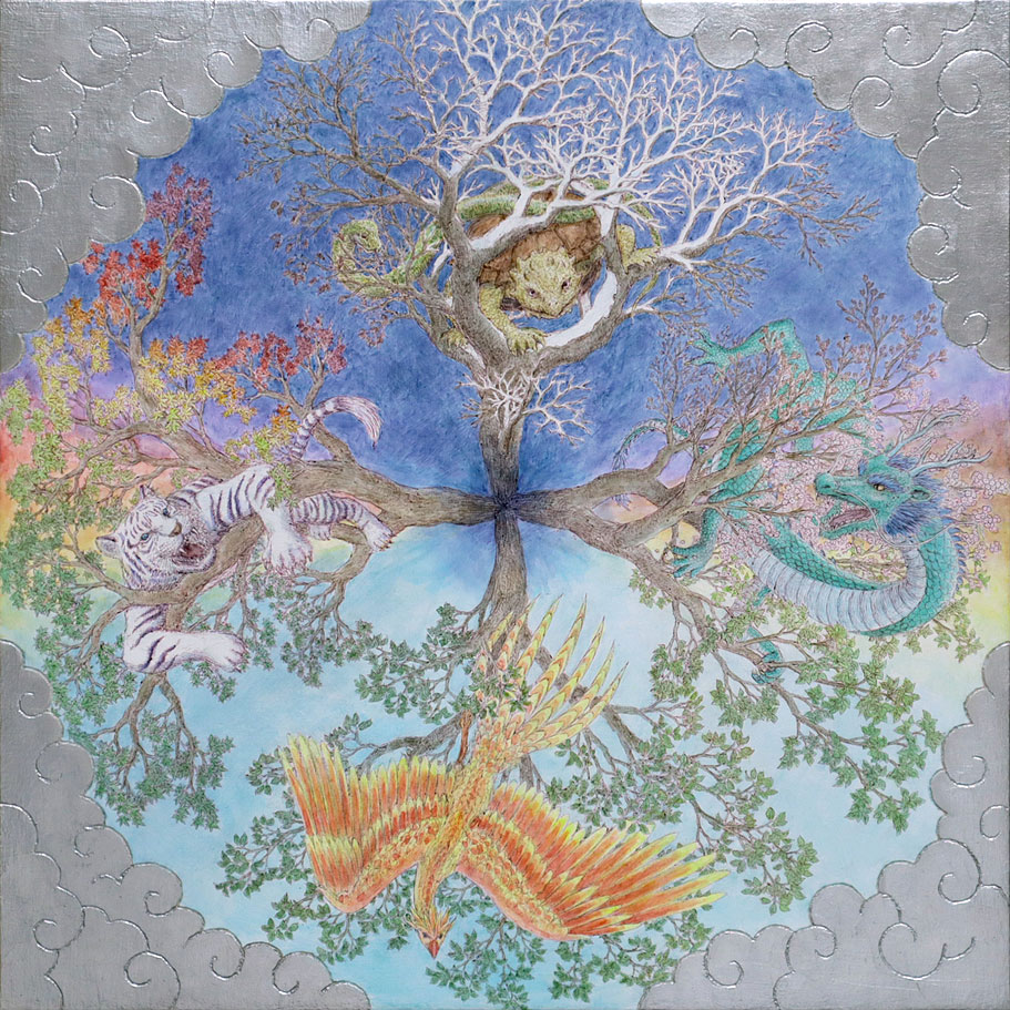 | Material | アクリル絵具、油性ボールペン、ジェッソ、木パネル |