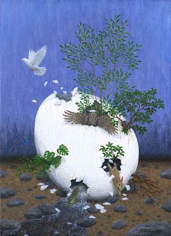 | Material | アクリル絵具、油性ボールペン、ジェッソ、木パネル |